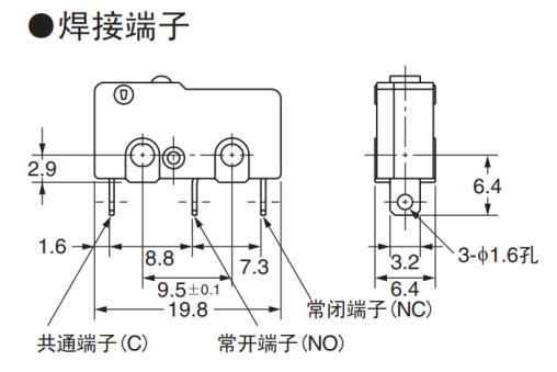 小型微動開關(guān)有分焊接端子,接線端子,印刷基板用端子,而焊接端子在焊接過程中的方法及注意點我們來學習一下:在焊接過程中的方法焊接端子型1:根據(jù)焊接端子的耐熱性來區(qū)分的一種類型,滿足下面的試驗條件。