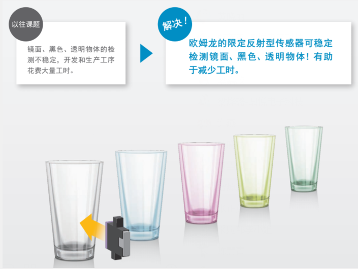 下面我們來(lái)介紹下既能檢測(cè)透明,又能檢測(cè)有無(wú)物體傳感器歐姆龍限定反射型傳感器 B5W-LB系列的特點(diǎn)