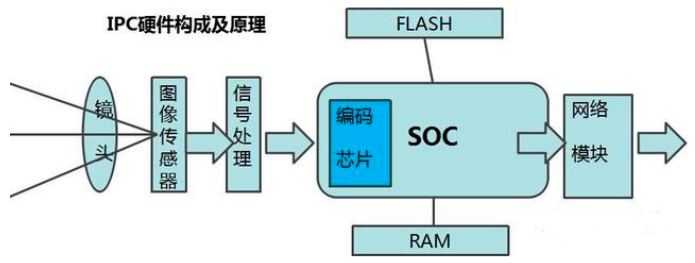 第三代數字視頻監(jiān)控主要系統(tǒng)構成設備:網絡攝像機(IPC)、視頻編碼器(DVS)、網絡錄像機(NVR)液晶監(jiān)視器、智能分析單元、CMS服務器、解碼服務器。IPC硬件構成及原理:圖像信號經過鏡頭輸入后,由圖像傳感器轉化為電信號,模/數轉換器將模擬信號轉換為數字信號,再經過編碼器按一定的編碼標準進行編碼壓縮,在控制器的控制下,由網絡服務模塊按一定的網絡協(xié)議發(fā)送到網絡上,控制器還可以接收報警信號及發(fā)送控制信號。