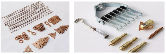 工作原理:利用低電壓、高強(qiáng)度的電流流過(guò)兩塊鋼板(或鋼板與介子)時(shí)產(chǎn)生的高電阻熱熔化接觸部分的金屬,用焊槍電極擠壓力把它們?nèi)酆虾附釉谝黄穑儆美喂ぞ呷鐟T性錘,實(shí)現(xiàn)修復(fù)板件缺陷的目的。附圖工具:圖1介子墊圈 圖2:碳棒 銅頭
