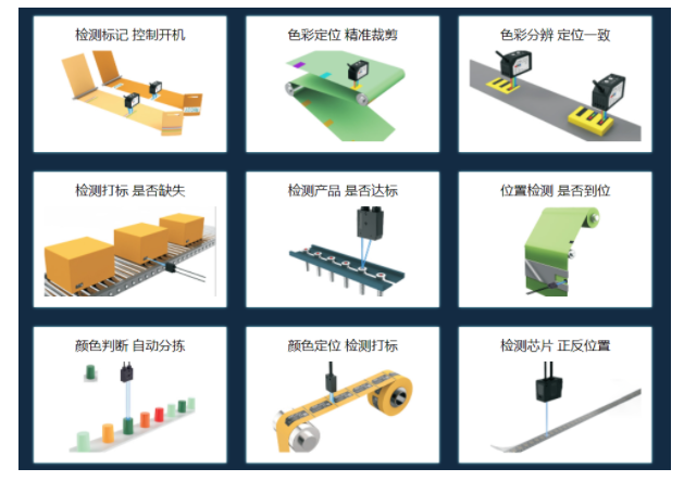 顏色傳感器主要用于檢測目標物體表面顏色,主要在工業(yè)、醫(yī)療和安防系統(tǒng)中有著廣泛的應(yīng)用。常見用途有混料檢測、有無檢測、污漬檢測等等。采用傳統(tǒng)光電傳感器通過反射光量之差進行檢測時,可能會檢測背景、受背景影響導(dǎo)致無法對檢測物體執(zhí)行穩(wěn)定檢測的現(xiàn)象。如果采用通過顏色傳感器輸出各檢測物體顏色信號的方式,有時可確認檢測物體的有無。