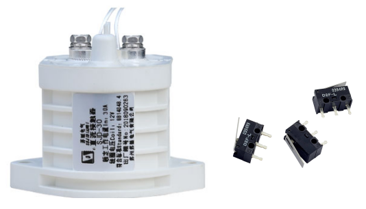 直流接觸器為了檢測(cè)主觸點(diǎn)的通斷情況,通常還設(shè)有一組輔助觸點(diǎn),該組輔助觸點(diǎn)通常采用微動(dòng)開(kāi)關(guān)來(lái)實(shí)現(xiàn),也就是說(shuō),現(xiàn)有技術(shù)的這種直流接觸器設(shè)有一個(gè)微動(dòng)開(kāi)關(guān),用來(lái)檢測(cè)主觸點(diǎn)的通斷情況,實(shí)現(xiàn)該設(shè)計(jì)方案時(shí),是在推動(dòng)桿上裝有一撥動(dòng)臂,在直流接觸器內(nèi)的對(duì)應(yīng)位置裝上述微動(dòng)開(kāi)關(guān),當(dāng)推動(dòng)桿帶動(dòng)動(dòng)簧運(yùn)動(dòng)使主動(dòng)觸點(diǎn)和主靜觸點(diǎn)接觸時(shí),推動(dòng)桿同時(shí)帶動(dòng)撥動(dòng)臂運(yùn)動(dòng),通過(guò)撥動(dòng)臂觸動(dòng)微動(dòng)開(kāi)關(guān)的動(dòng)臂,使微動(dòng)開(kāi)關(guān)接通或斷開(kāi),通過(guò)直流接觸器的電路板對(duì)微動(dòng)開(kāi)關(guān)接通或斷開(kāi)信號(hào)的檢測(cè),從而實(shí)現(xiàn)對(duì)主觸點(diǎn)通斷情況的檢測(cè)。