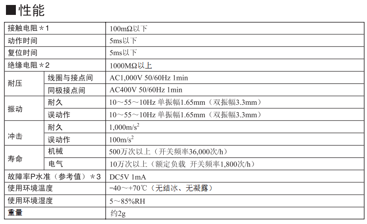 寬范圍的接點開關(guān)區(qū)域1mA~1A。