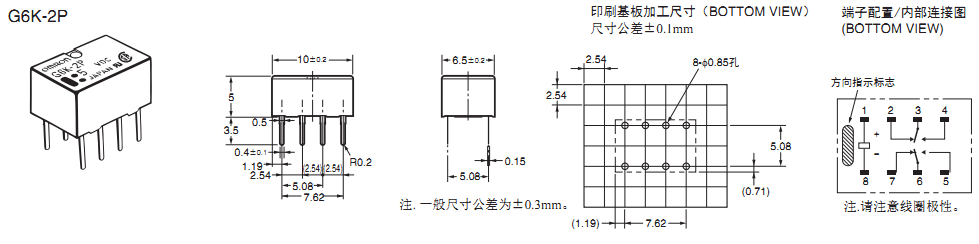 高5.2mm×寬6.5mm×長10mm的超小型,對應(yīng)高密度封裝(G6K(U)-2F(-Y)型)。