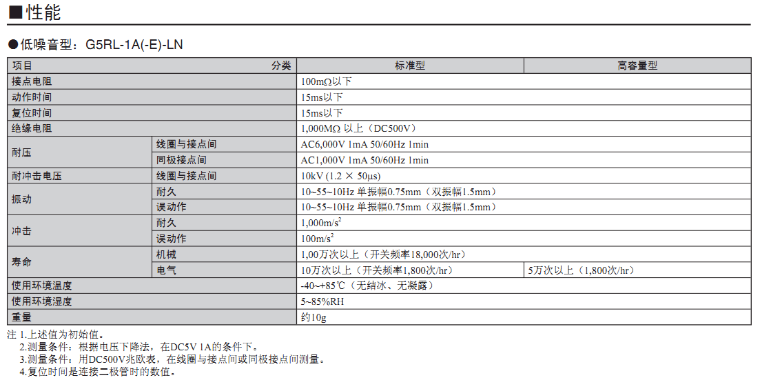 ? 備有低噪音型(比標(biāo)準(zhǔn)型G5RL繼電器的聲壓低約10~20dB)