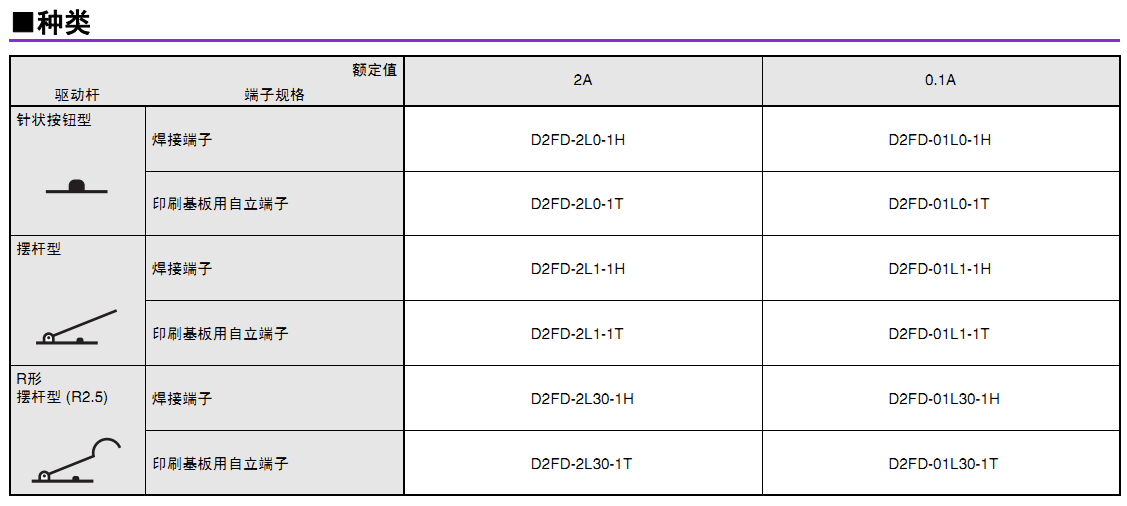 • 可動片為1片彈簧構(gòu)造,支持AC125V 2A開關(guān),更有微小負(fù)載型可供選擇。