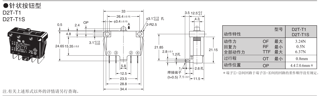 歐姆龍門用/電源開關(guān),D2T-T1,歐姆龍門用/電源開關(guān)D2T