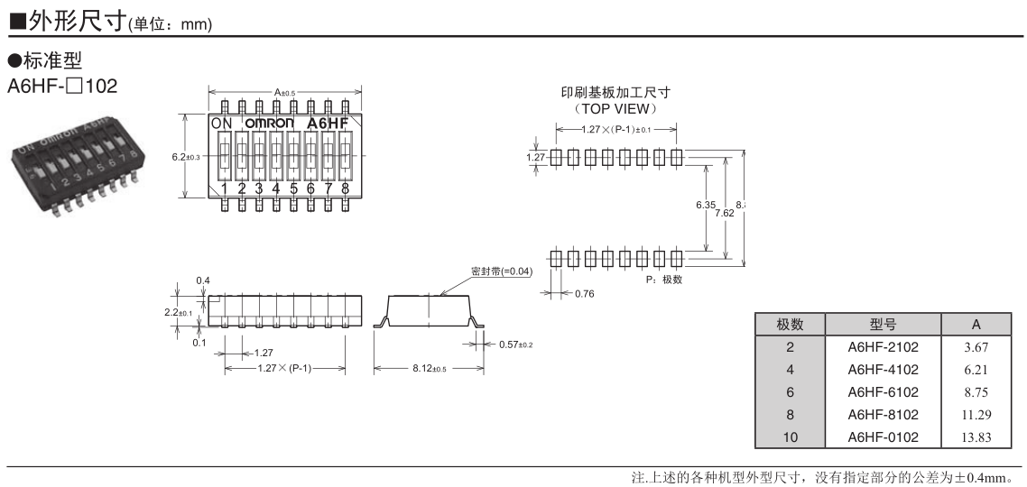 歐姆龍DIP開關(guān), A6HF-2102,歐姆龍DIP開關(guān)A6HF