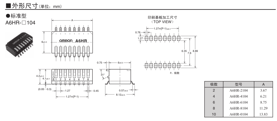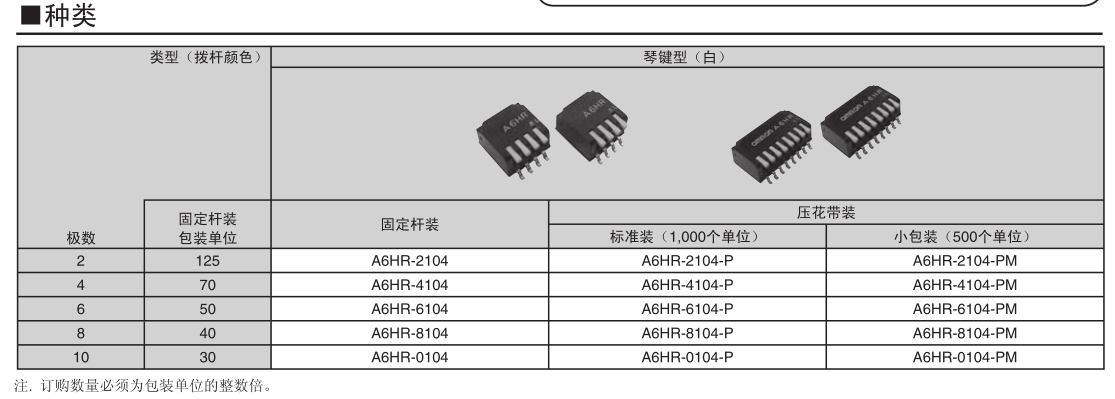 • A6HR-2104琴鍵型DIP開(kāi)關(guān)