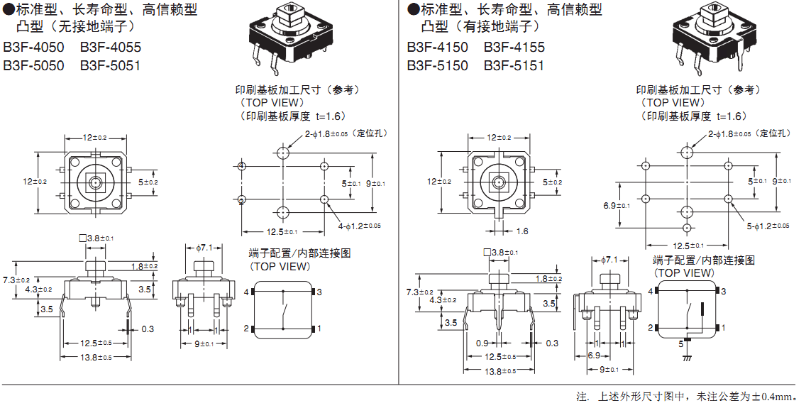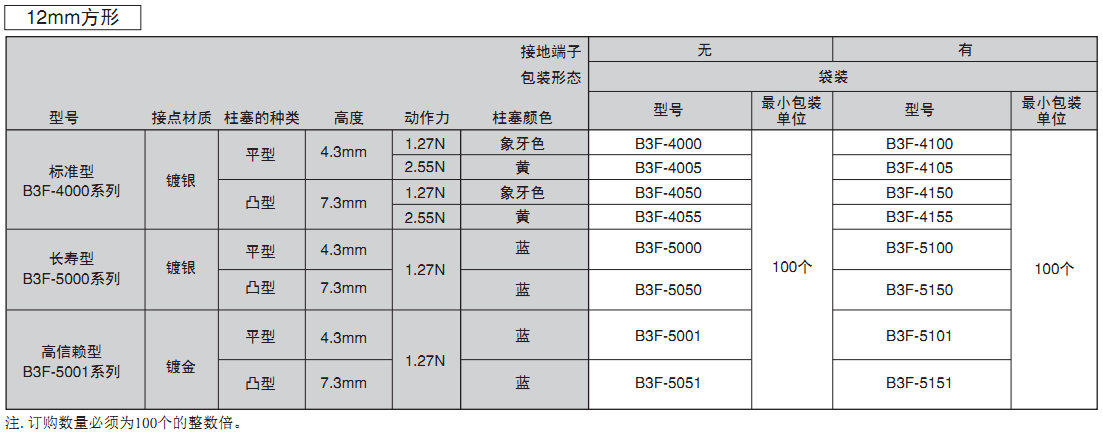 6mm方形、12mm方形具有橫向操作、高負載、鍍金型等全系列產(chǎn)品