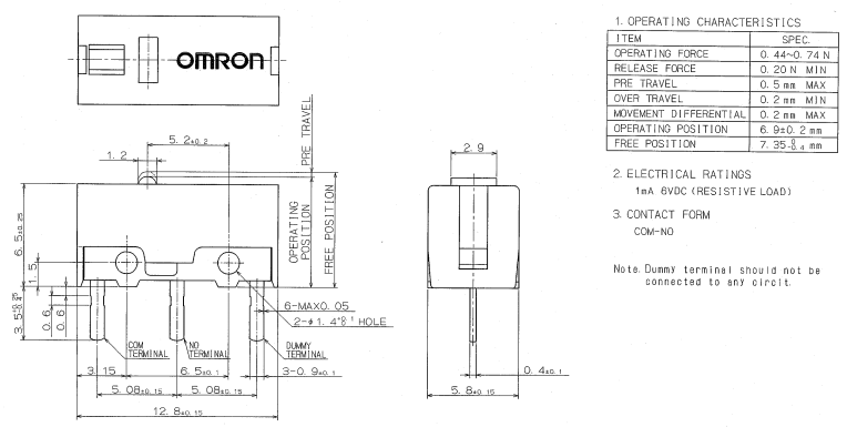 D2FC-F-7N, 克力為:60+/-15G,壽命為500萬次;