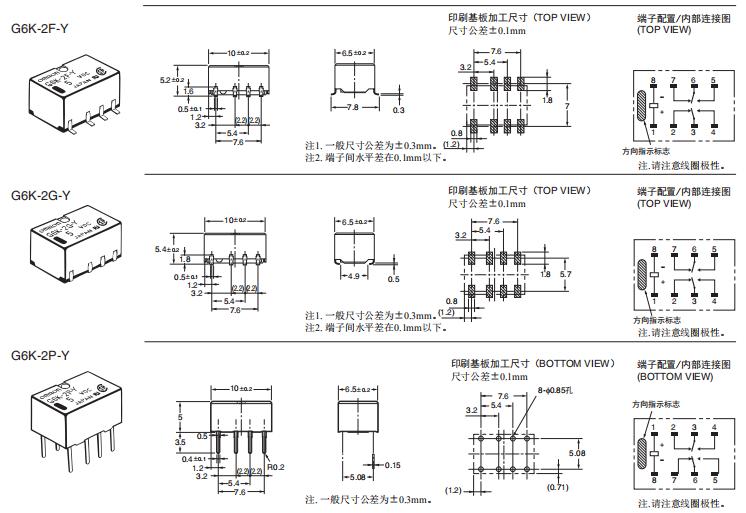 •  高5.2mm×寬6.5mm×長(zhǎng)10mm的超小型,對(duì)應(yīng)高密度封裝(G6K(U)-2F(-Y)型)