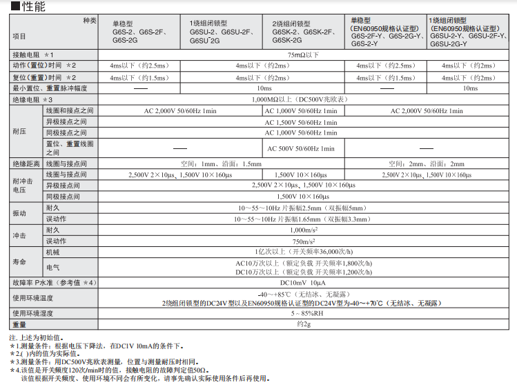 線圈接點間耐高壓2,000V AC、高度耐沖擊電壓2,500V 2×10μs(Telcordia標準)。