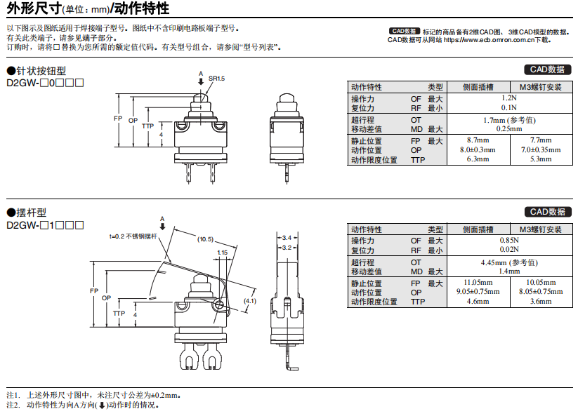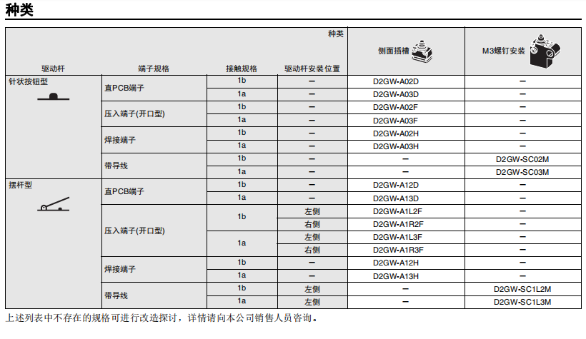 • 超小型微動開關(guān)D2GW系列