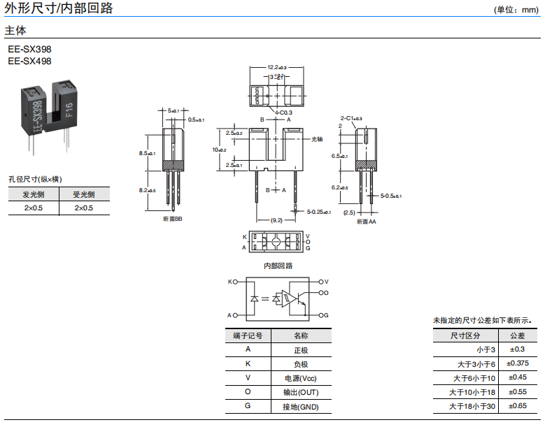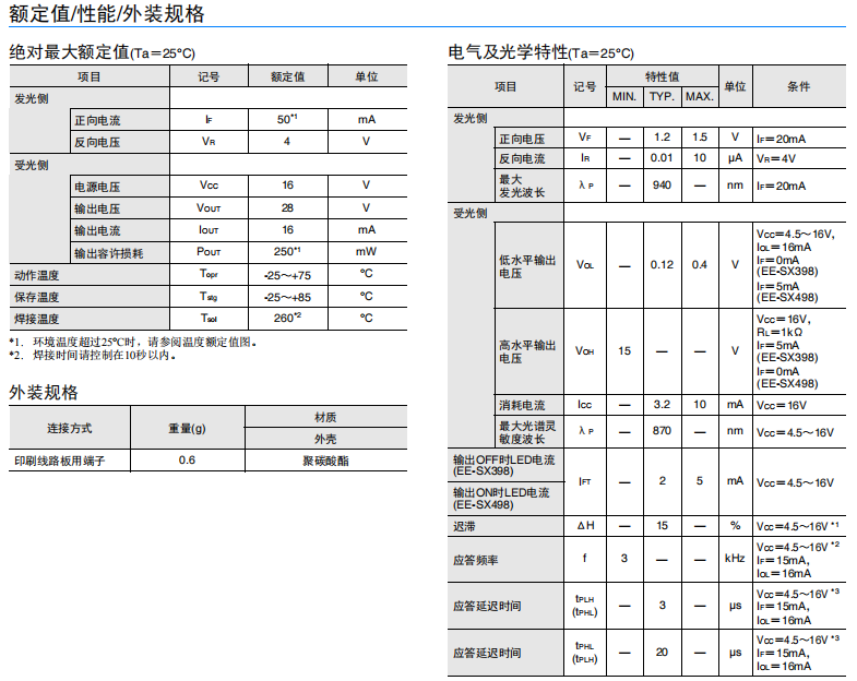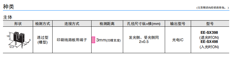 • EE-SX398/EE-SX498 微型光電傳感器(透過型)