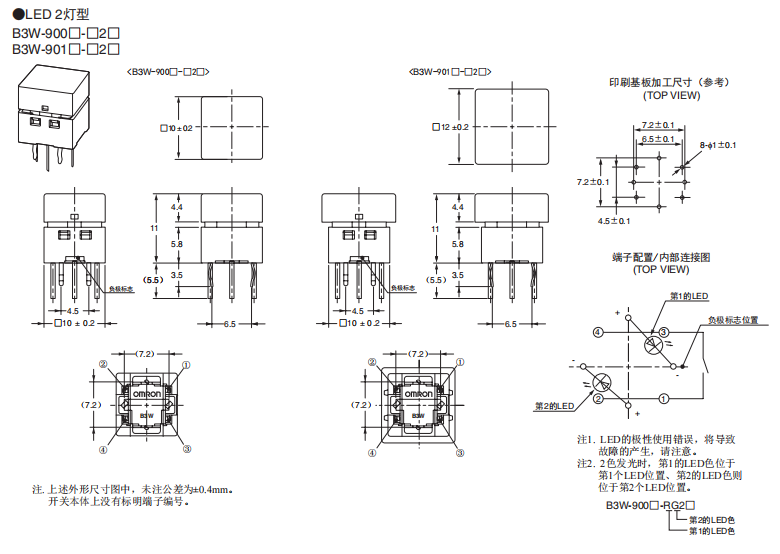 小型尺寸(10mm/12mm×高度11mm),實(shí)現(xiàn)亮度均勻的發(fā)光。