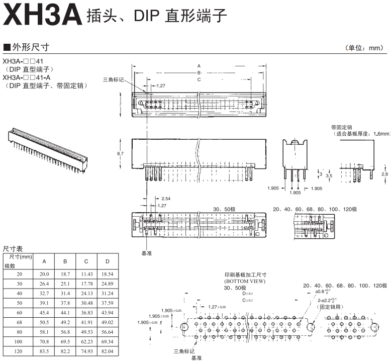 XH3A系列 半間距連接器(基板對(duì)基板連接用(無(wú)耳))