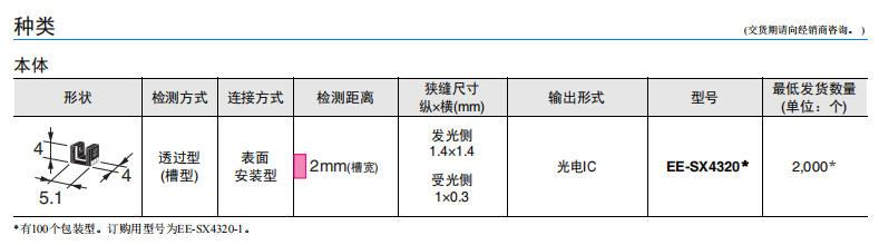 EE-SX4320 微型光電傳感器(透過型)