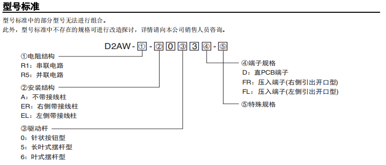 • D2AW-R 電阻內(nèi)置型微動(dòng)開(kāi)關(guān)