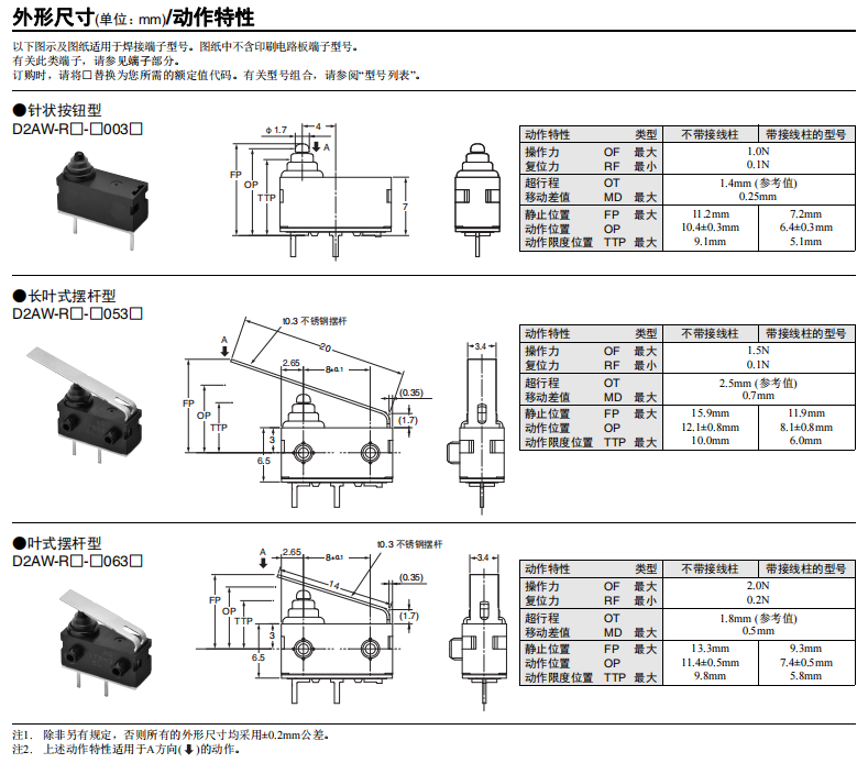 D2AW-R 電阻內(nèi)置型微動(dòng)開(kāi)關(guān)